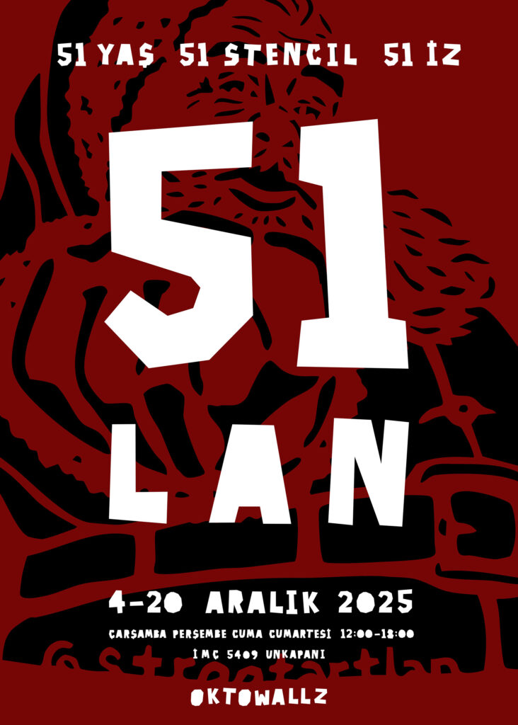 oktowallz opens December with the raw sincerity of the streets. Between December 4–20, 2025“51”, a solo exhibition by Street Art LAN—one of the most familiar yet often unseen signatures of Istanbul’s streets—meets the audience at our temporary space in İMÇ.